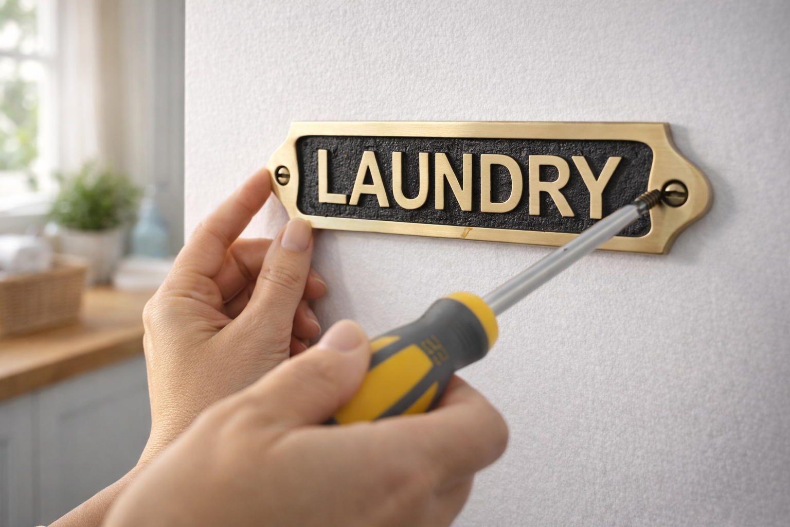 Solid Brass Laundry Sign