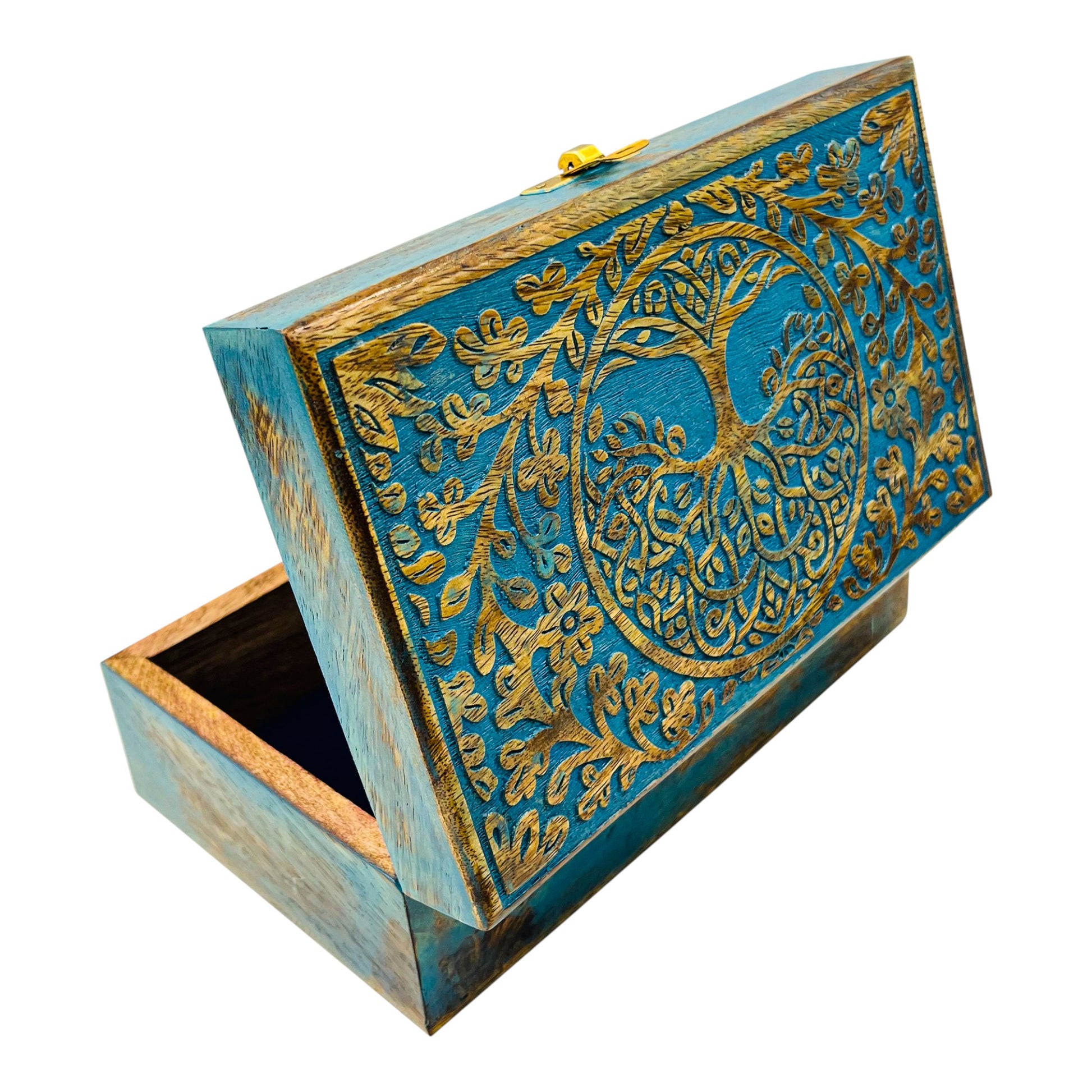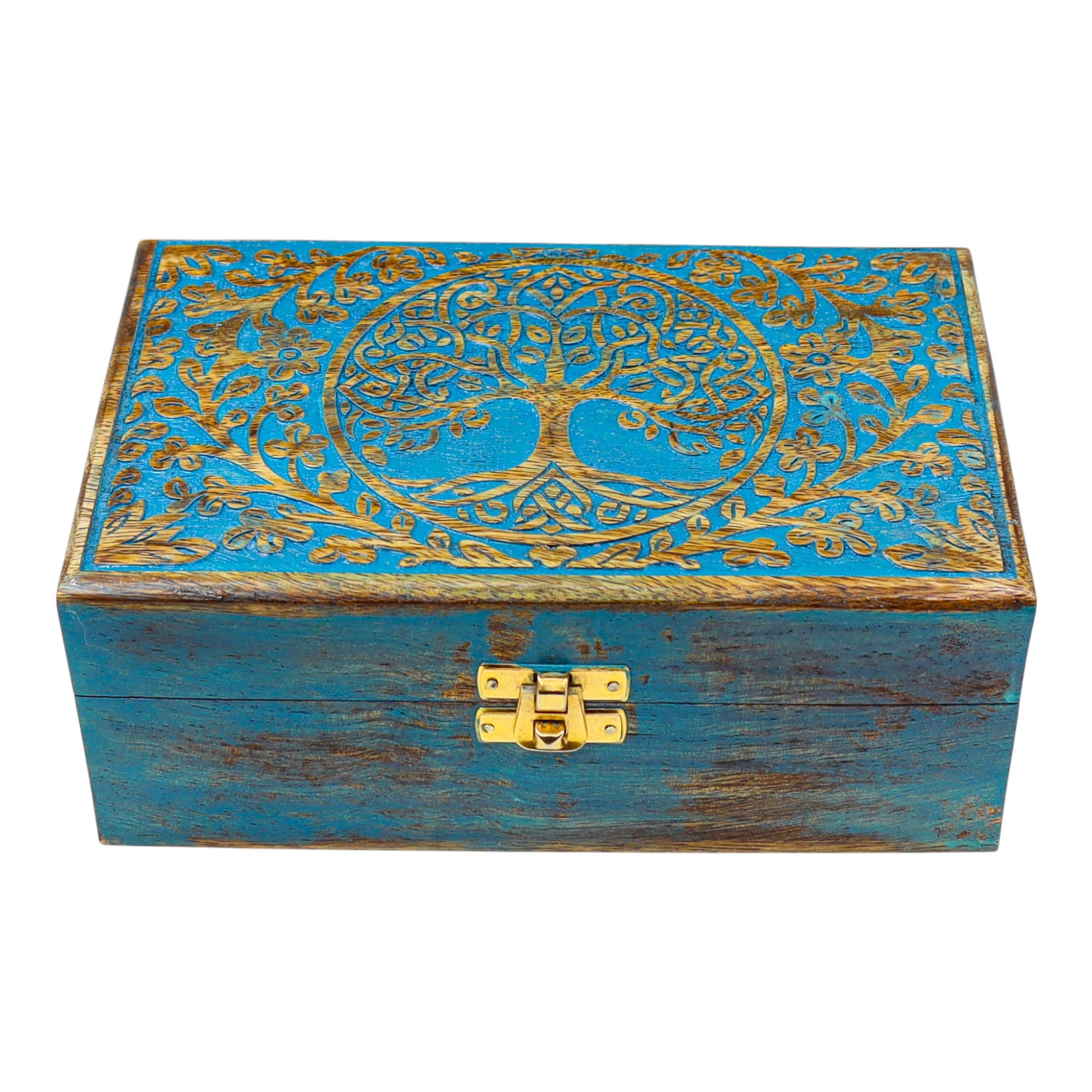 Blue Tree of Life Wooden Chest