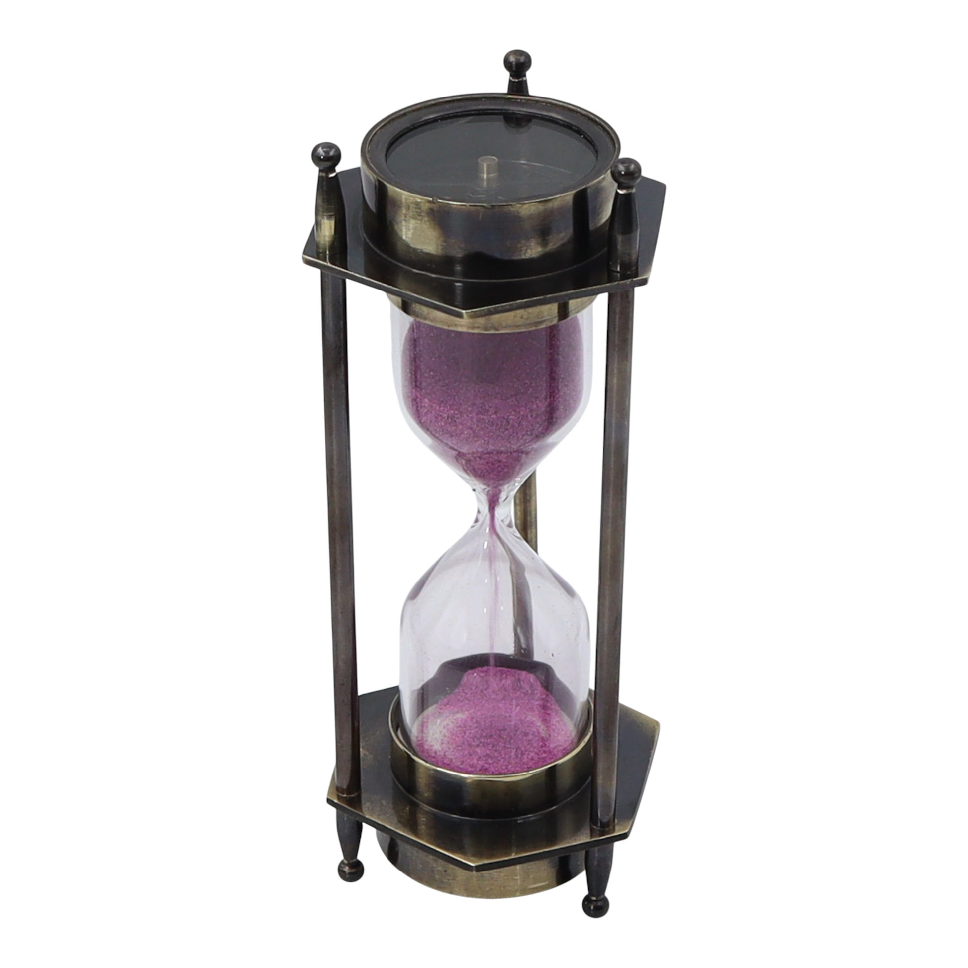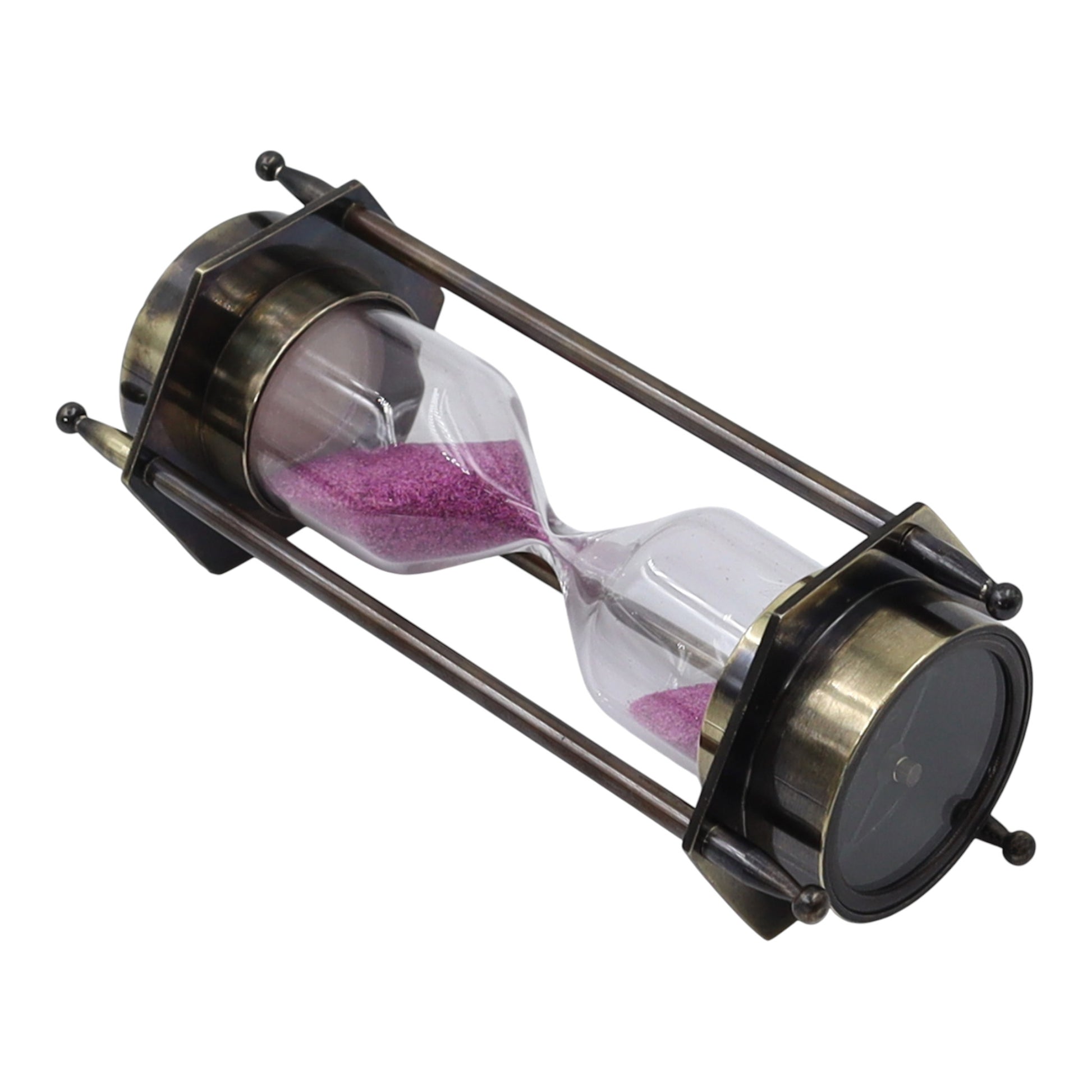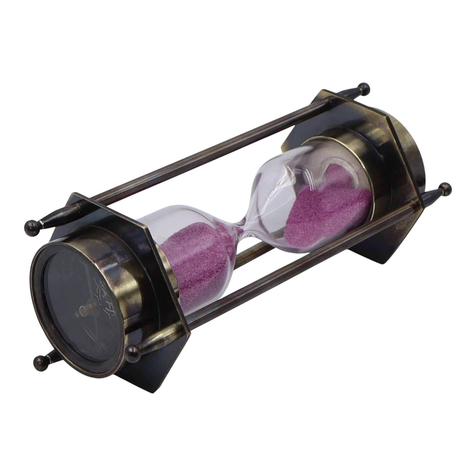 Bronze Hourglass with Pink Sand and Compass