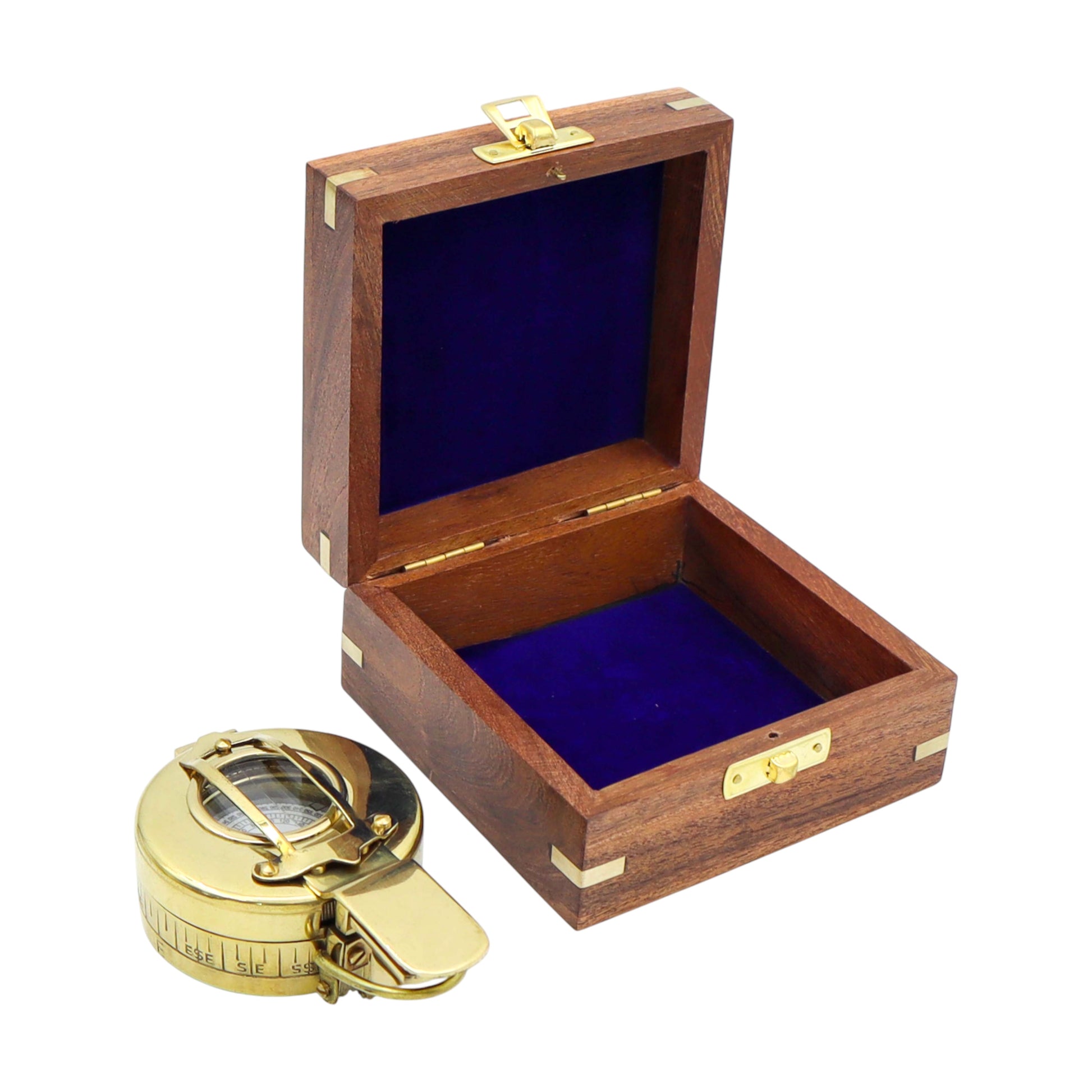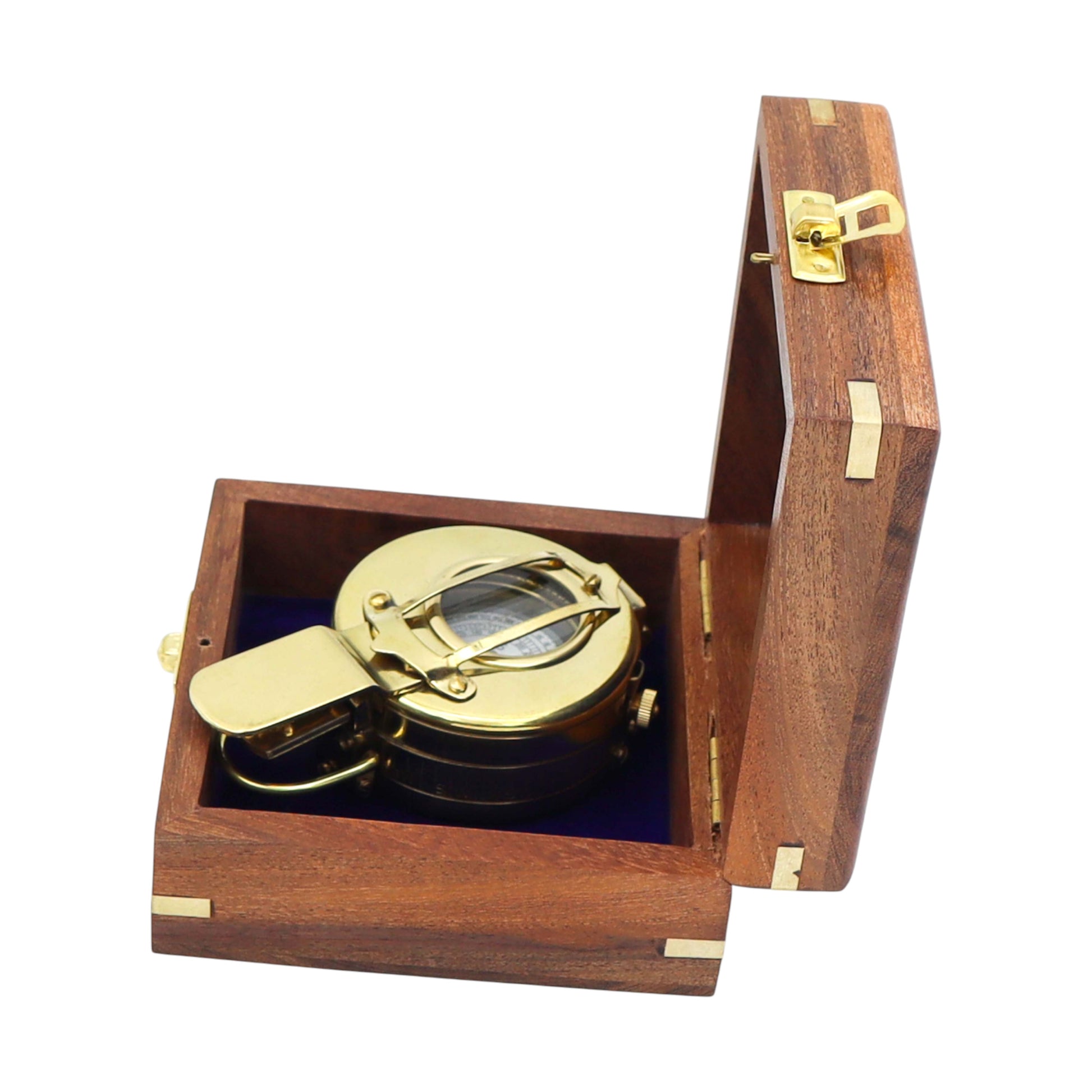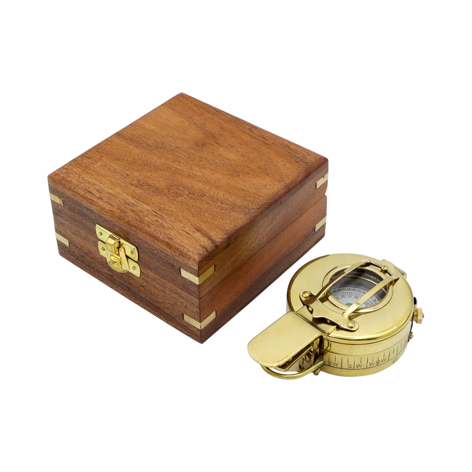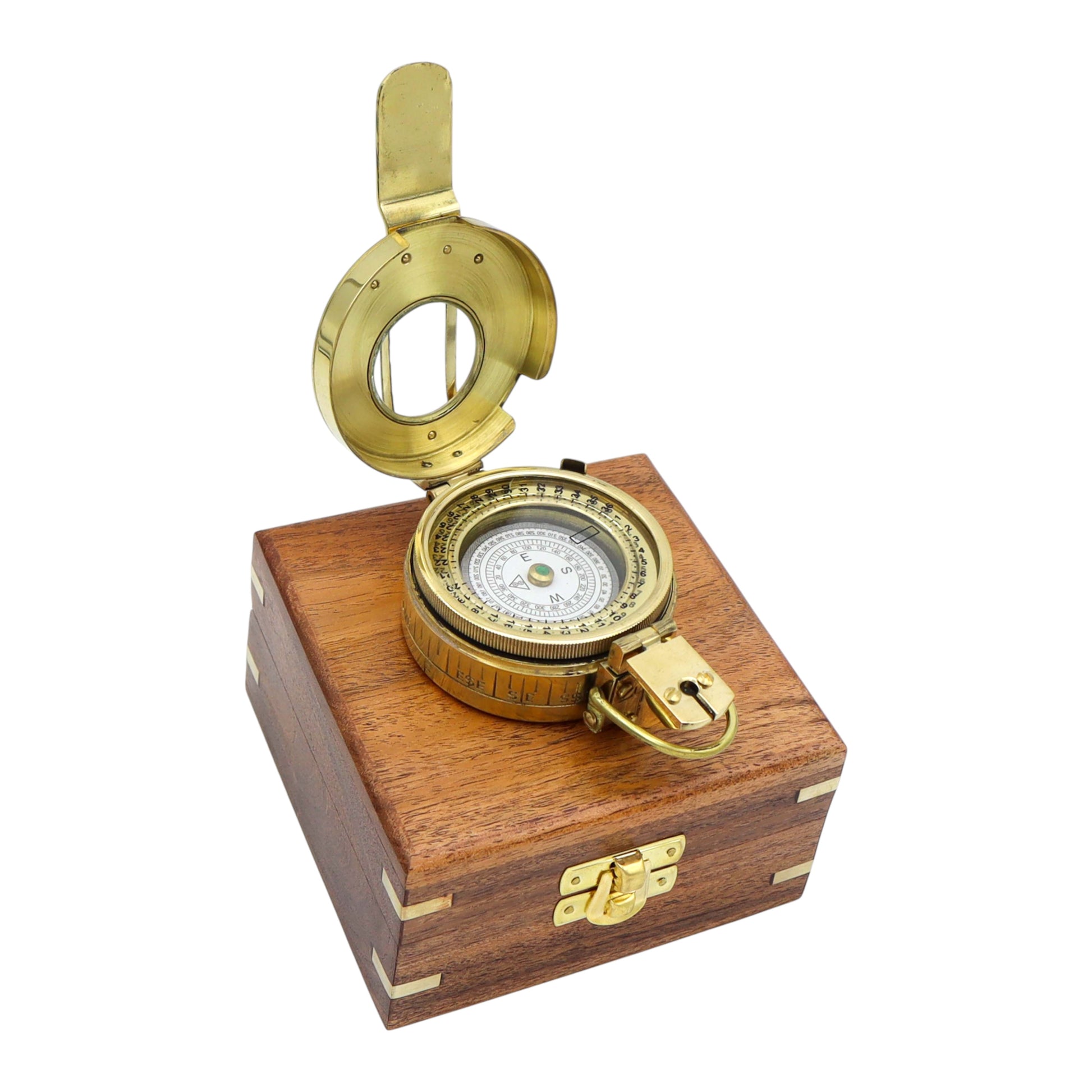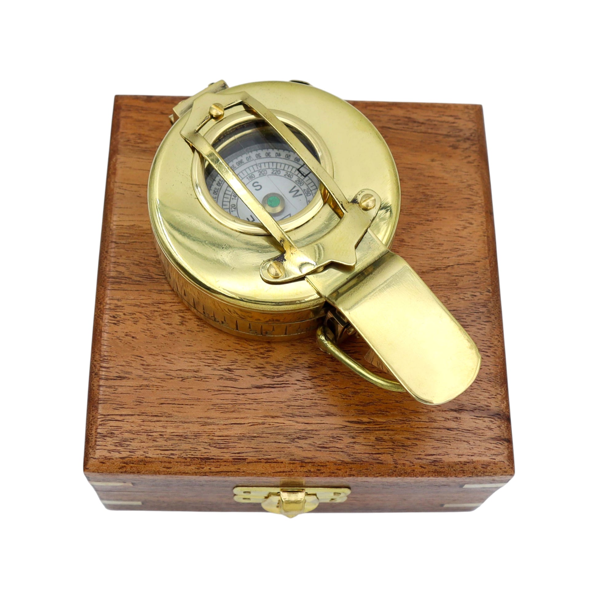 Personalised Brass Prismatic Marching Compass with Wooden Box