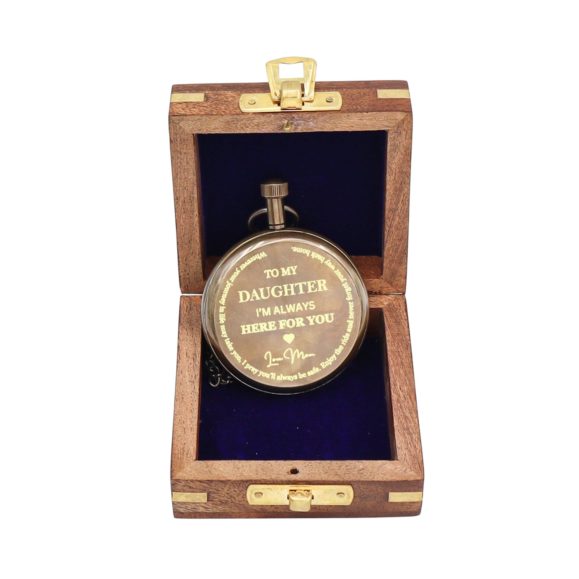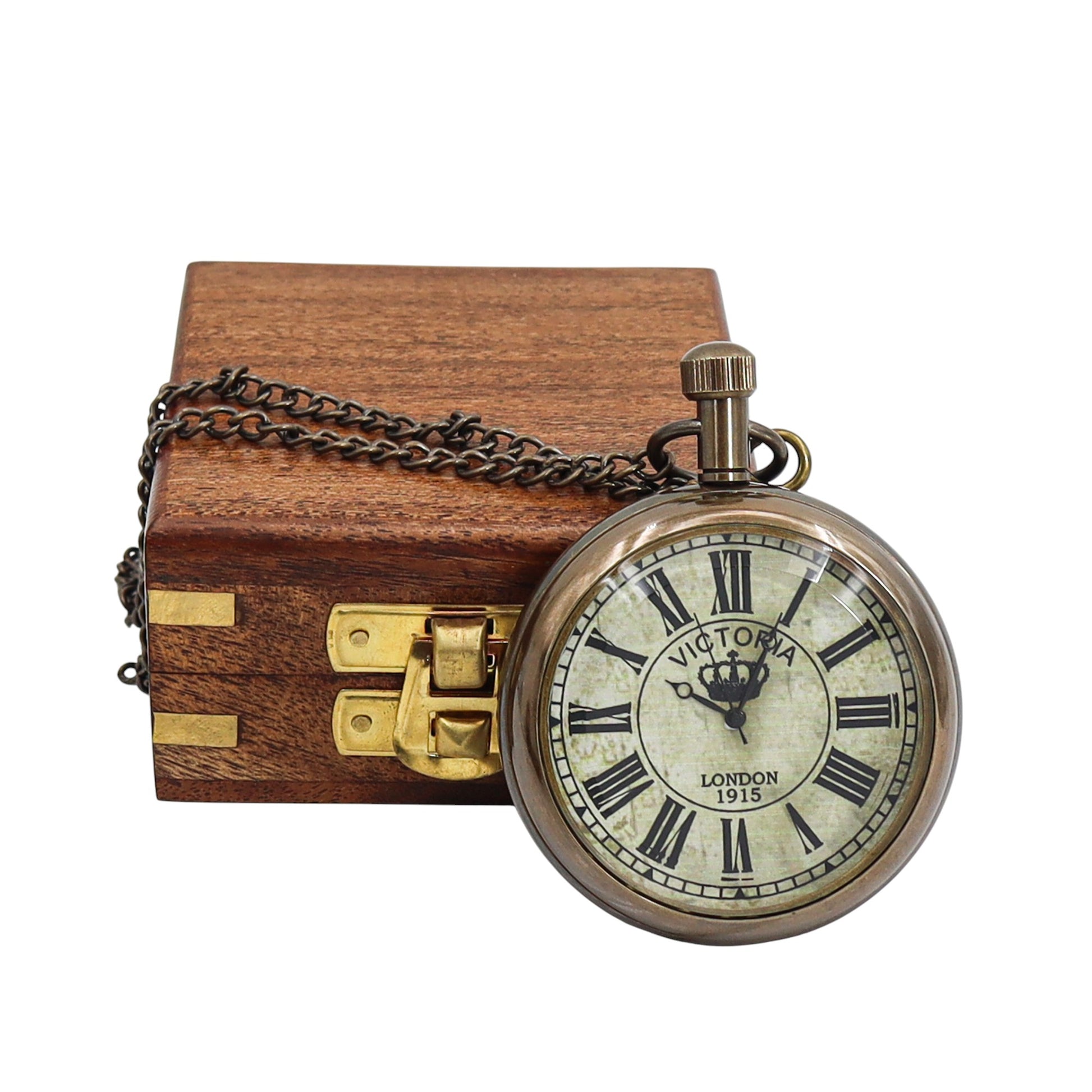 This is a fully functional pocket pocket watch that comes with a wooden box or leather case, made from brass, engraving options available on back side. Please refer to the personalisation instructions for more details. Please add an order note with your choice of box.